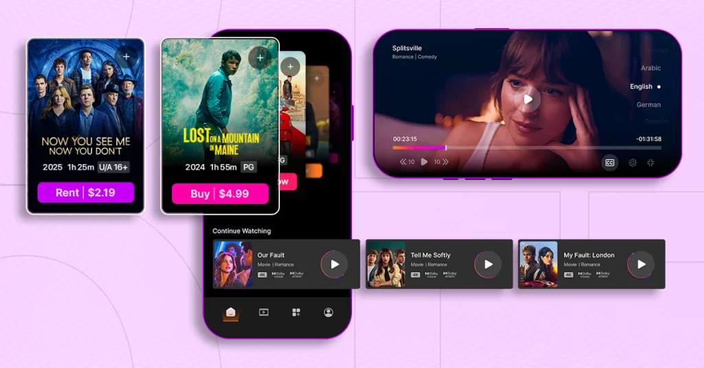 Your OTT app’s success heavily relies on user experience (UX) and user interface (UI) design. A good interface design allows users to easily navigate and find what they are looking for while a seamless user experience keeps them engaged.